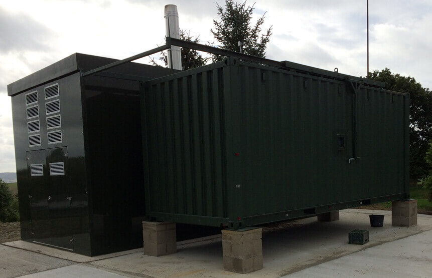 This was a turnkey Installation by DC2 Engineering Ltd of a single containerized Froling TI350 (kW) biomass wood chip boiler with an adjacent fuel store container to serve the space heating needs of the two poultry sheds in place of LPG heaters on site. This project was aimed at improving the local environment and safety of the poultry sheds as well as reducing costs and reducing the carbon footprint of the site as a whole for the next couple of decades and beyond.